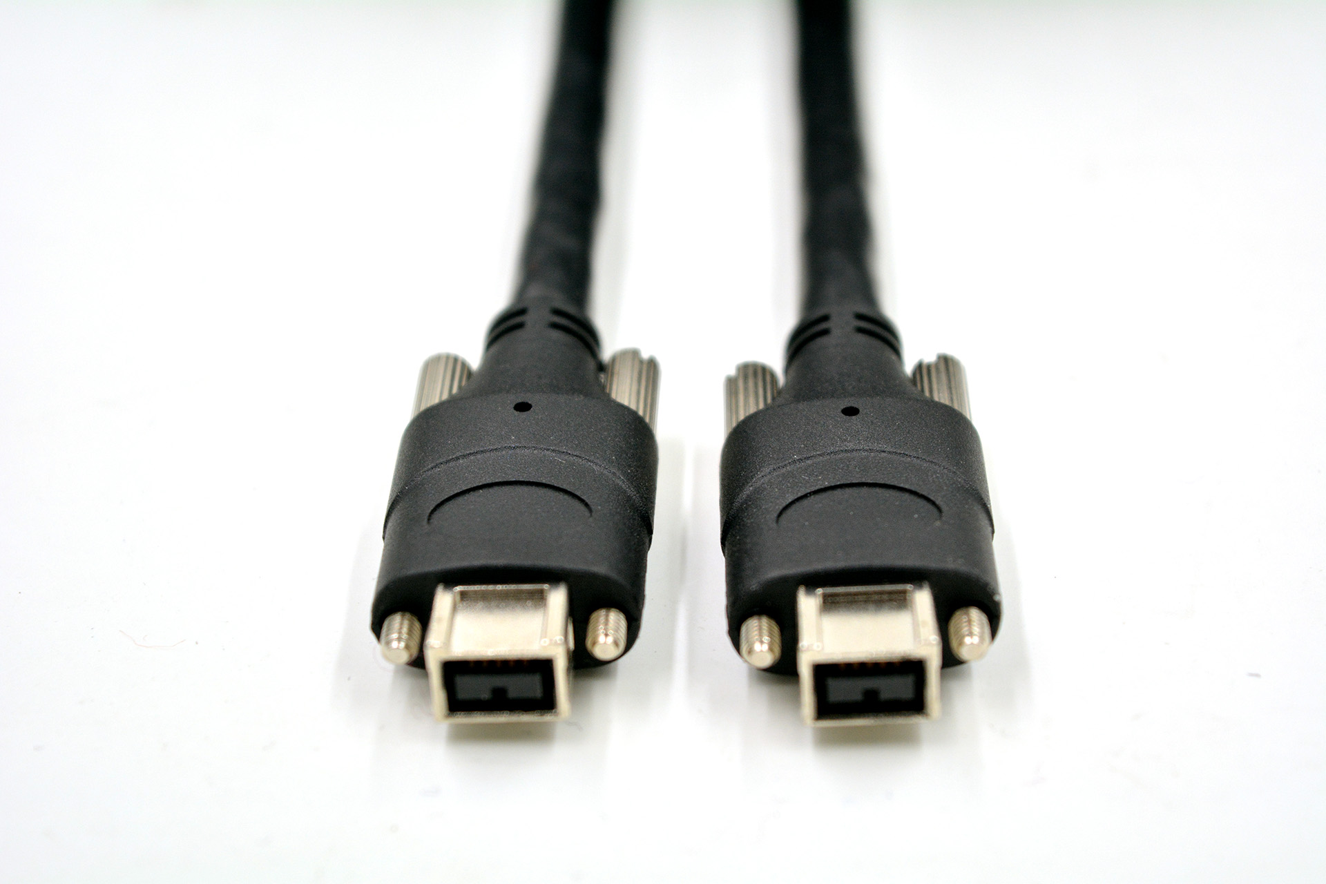 This 1394 B 9-pin cable has two IEEE 1394B firewire male connectors. Both connectors have thumb-locking screws. It can connect the frame grabber with cameras.